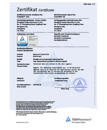 • 櫥柜燈電源CE證書